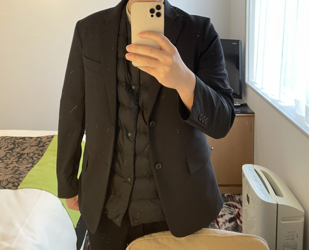 ちなみに服装なんですが、平服でお越しくださいと記載がありましたが、一応この日のためにジャケットを購入してビジネススタイルにして行きました🙌(ホテルの鏡汚すぎ)